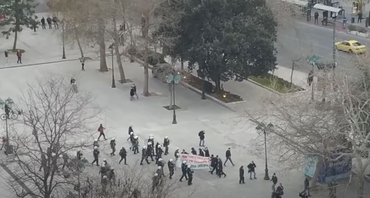 Όπως φαίνεται στο πανοραμικό βίντεο που ήρθε στο φως της δημοσιότητας χωρίς να υπάρξει καμία πρόκληση, την ώρα που άρχισαν οι διαδηλωτές να συγκεντρώνονται στην πλατεία Συντάγματος, αστυνομικές δυνάμεις τους περικύκλωσαν και σπρώχνοντάς τους, τους οδήγησαν στο κάτω μέρος της πλατείας προς τον δρόμο.