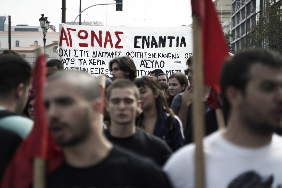 Τις τελευταίες εβδομάδες οι φοιτητές βρίσκονται σταθερά στους δρόμους και χθες πραγματοποίησαν άλλο ένα μαζικό πανεκπαιδευτικό συλλαλητήριο από τα Προπύλαια ως τη Βουλή, στο τέλος του οποίου επικράτησε ένταση και τραυματίστηκε σοβαρά στο κεφάλι από κρότου-λάμψης ένας 19χρονος, μέλος της νεολαίας του ΜέΡΑ25, ο οποίος μεταφέρθηκε στο νοσοκομείο ΚΑΤ.