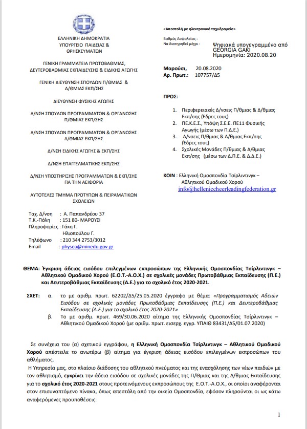 Την εισαγωγή του «cheerleading» στην πρωτοβάθμια και δευτεροβάθμια εκπαίδευση φαίνεται πως αποφάσισε το υπουργείο Παιδείας, με νέα εγκύκλιο που υπέγραψε ο προϊστάμενος Διεύθυνσης Σπουδών Α/θμιας και Β/θμιας Εκπαίδευσης, Κωνσταντίνος Τσαχαλάς.