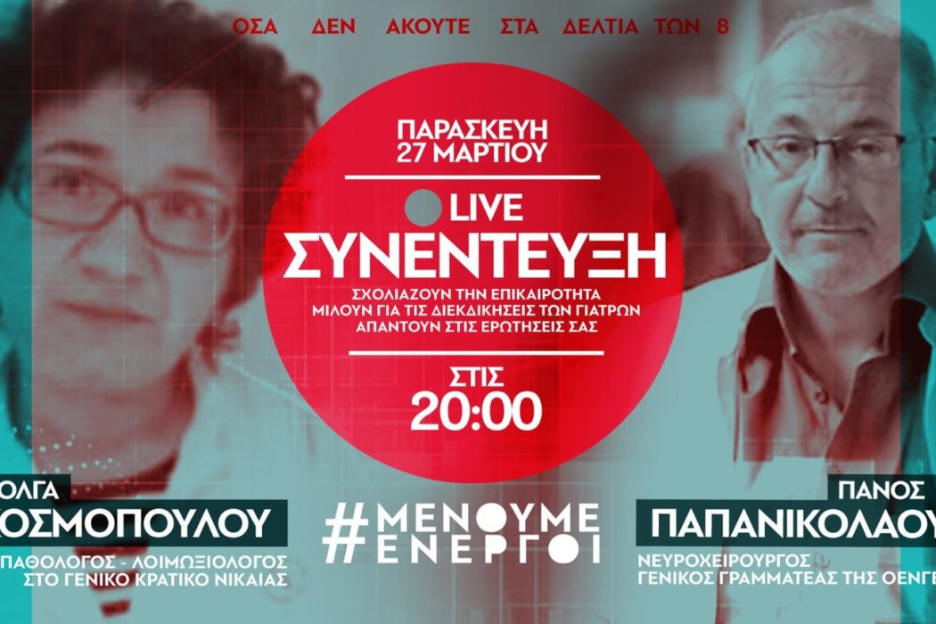 Η συνέντευξη μεταδόθηκε μέσω της σελίδα της πρωτοβουλίας «Μένουμε Ενεργοί – υγεία, συλλογικότητα, αλληλεγγύη» στο facebook.