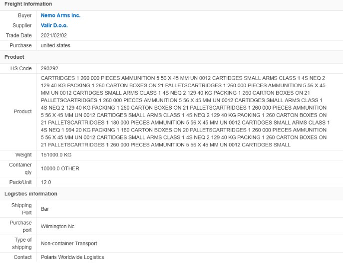 Στις 2 Φεβρουαρίου 2021 η Valir DOO εξήγαγε 10 εκατομμύρια τεμάχια σφαιρών 5,65×45 χιλιοστών στην αμερικανική εταιρεία NEMO Arms Inc, τα οποία κατασκευάζονται από την Prvi Partizan-Serbia και είναι προδιαγραφών ΝΑΤΟ. Η Prvi Partizan είναι ένα κρατικό εργοστάσιο όπλων, που στην ιστοσελίδα της αναφέρει μεταξύ των κύριων συνεργατών τη Valir, μαζί με άλλους τέσσερις κρατικούς, σέρβους κατασκευαστές όπλων και το υπουργείο Άμυνας της Σερβίας. Παρά το γεγονός ότι βρίσκεται υπό τις κυρώσεις των ΗΠΑ, ο Τέσιτς καταχώρησε μια εταιρεία στις ΗΠΑ, την Style Cupid Inc. Ωστόσο, όπως επισημαίνει η Ντιλιάνα, δεν υπάρχουν πληροφορίες σχετικά με τις δραστηριότητες που έχει αυτή η εταιρεία.