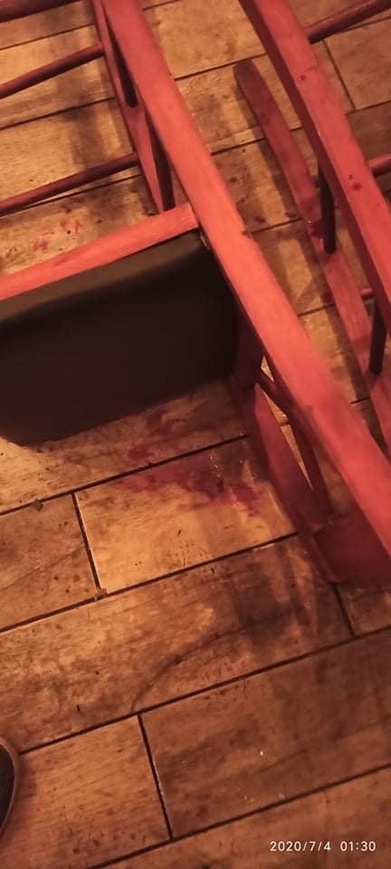 Προσθέτει ότι «ξαναέρχονται λοιπόν προς τα εμάς τα μηχανάκια, γίνεται ένα σκηνικό εκεί στους “Πέντε δρόμους” με καρέκλες κλπ και με μια μανία έρχονται έξω από το μαγαζί. Χτύπησαν έναν από εμάς, που φώναζε “δεν επιτρέπεται να είστε μέσα βγείτε έξω, αυτόν τον πήγαν στο τέρμα του μαγαζιού και τον χτυπάγανε. Και για κάποιον λόγο που δεν μπορώ να καταλάβω, έναν θαμώνα τον βάλανε πέντε κάτω και τον χτυπάγανε, μέσα στο μαγαζί. Αυτόν συνέλαβαν τελικά. Ένας δηλαδή από τους συλληφθέντες, για τον οποίον κατέθεσα εγώ, ήταν μέσα στο μαγαζί, είναι ένας άνθρωπος που έπινε ποτό».