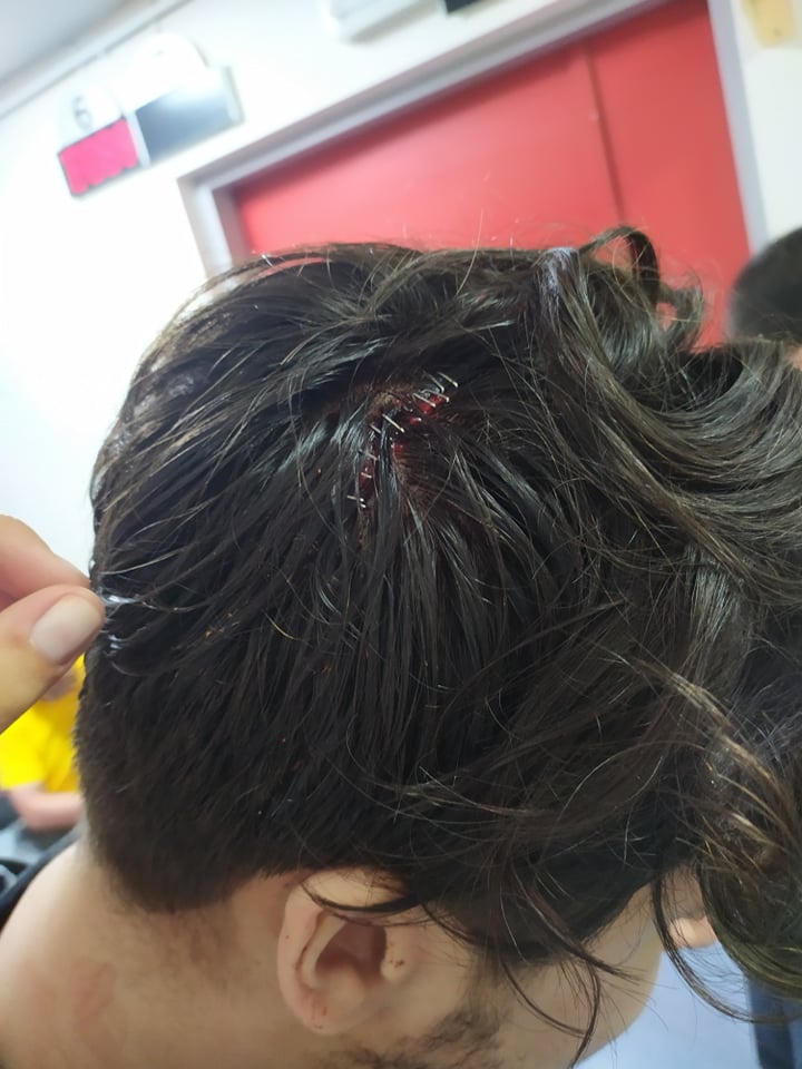 «Εγώ είχα μόλις φτάσει εκείνη τη στιγμή και είχα πάρει τη μία μου φίλη να τη ρωτήσω πού βρίσκεται, είτε για να πηγαίναμε στη συναυλία είτε αλλού στα Εξάρχεια. Εκείνη την ώρα που μιλούσαμε, βλέπω από τα αριστερά μου να έρχονται μηχανές με αστυνομικούς και τον κόσμο να τρέχει πανικόβλητος στη Θεμιστοκλέους, προς Ομόνοια. Αρχίζω κι εγώ να τρέχω, είναι μικρό στενό η Θεμιστοκλέους δεν έχει κάπου να κάνεις στην άκρη να γλυτώσεις από κάτι. Έβλεπα μηχανές να πέφτουν σε κόσμο και να χτυπάνε άτομα που τρέχανε και σε κάποια φάση, όταν φτάσαμε στον επόμενο δρόμο, είχανε σφίξει πολύ τα πράγματα, είχαν έρθει πολύ κοντά μας οι αστυνομικοί. Προσπάθησα εγώ να φύγω, ένας με τη μηχανή με χτύπησε στο πόδι και στη συνέχεια, ενώ βρισκόμουν πολύ κοντά στους αστυνομικούς, σήκωσα τα χέρια ψηλά, φώναξα «είμαι ακίνητος είμαι ακίνητος δεν έχω κάνει τίποτα». Αμέσως μετά δέχθηκα την γκλομπιά στο κεφάλι, που ήταν σαν να μου έχουν σπάσει ένα κομμάτι μάρμαρο στο κεφάλι. Μετά αιμόφυρτος, έχασα πάρα πολύ αίμα, είχε γίνει το χέρι μου χάλια, έφτασα στον Μαύρο Γάτο, που ήταν ο κόσμος σαστισμένος, ζήτησα βοήθεια, μου σκούπισαν εκεί τα αίματα, έβαλα πάγο και κάλεσαν ασθενοφόρο.