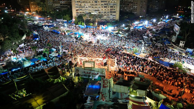 Η πλατεία Ραμπία αλ Ανταουίγια παραμένει κατάμεστη υποστηρικτών του έκπτωτου Αιγύπτιου προέδρου Μοχάμεντ Μόρσι που ζητούν την επιστροφή του στην εξουσία.