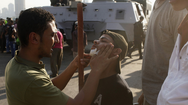 Αστυνομικοί ντυμένοι με πολιτικά επιτέθηκαν στους διαδηλωτές κάνοντας χρήση πραγματικών πυρών, σύμφωνα με τον Γκέχαντ Ελ-Χάνταντ, εκπρόσωπο της Μουσουλμανικής Αδελφότητας.
