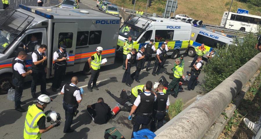 «Μέρα εξέγερσης» όπως χαρακτήρισαν τη σημερινή Παρασκευή οι ακτιβιστές, από το πρωί έχουν αποκλείσει τόσο την κεντρική αρτηρία Μ6 που οδηγεί στον διεθνή αερολιμένα του Χίθροου όσο και κεντρικούς δρόμους που εξυπηρετούν τα αεροδρόμια του Μπέρμπιχαμ αλλά και το δίκτυο των τραμ του Νόττιγχαμ ενώ αναμένεται μέχρι το βράδυ οι διαδηλώσεις να κλιμακωθούν και να επεκταθούν σε πολλές ακόμη πόλεις της χώρας.