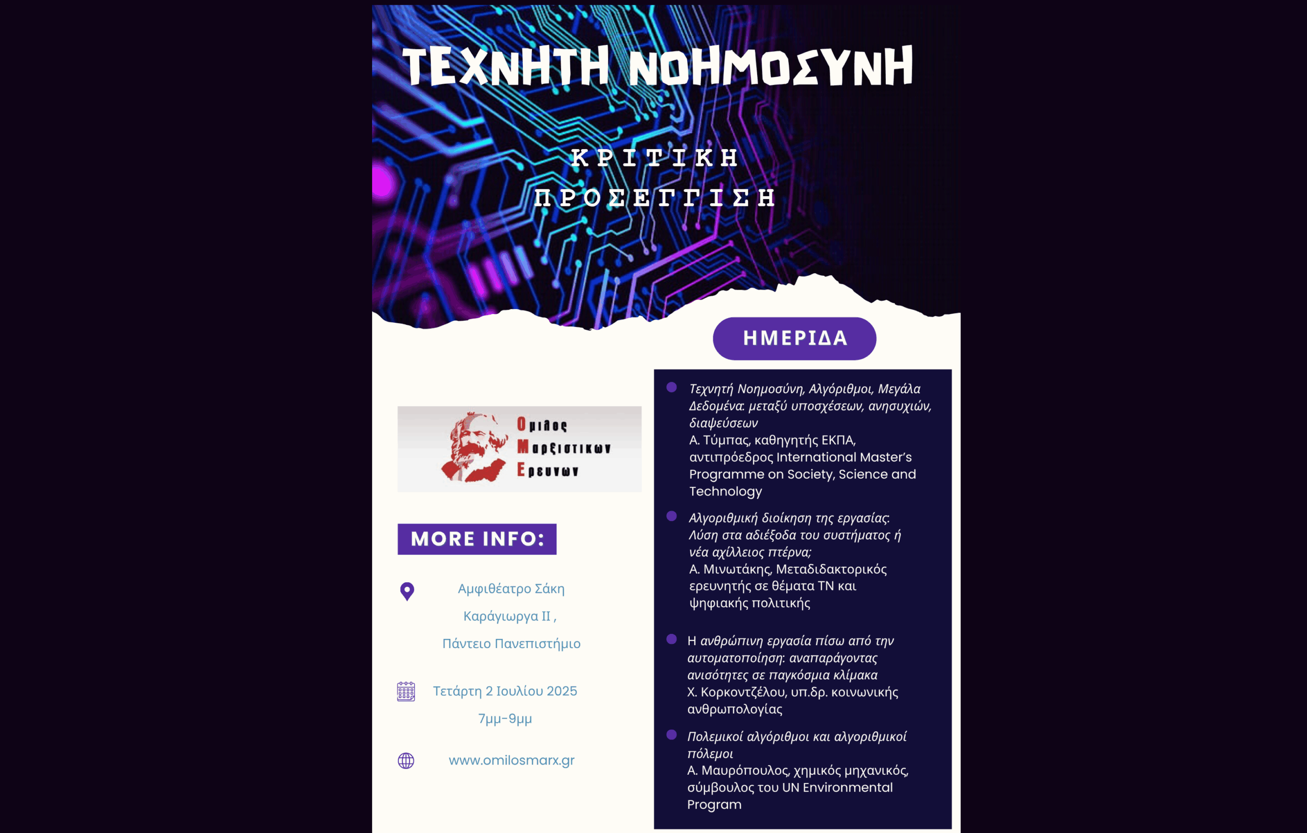 Τεχνητή Νοημοσύνη, Αλγόριθμοι, Μεγάλα Δεδομένα: μεταξύ υποσχέσεων, ανησυχιών, διαψεύσεων