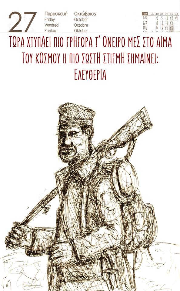 Τώρα χτυπάει πιο γρήγορα τ’ όνειρο μες στο αίμα. Tου κόσμου η πιο σωστή στιγμή σημαίνει: Ελευθερία