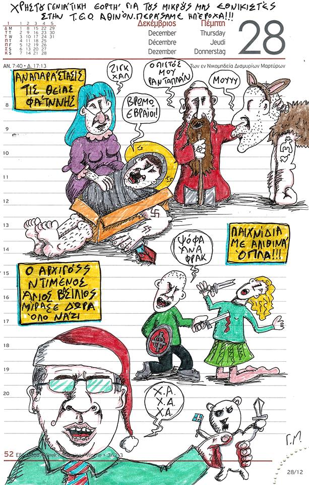 Χριστουγεννιάτικη γιορτή για εκκολαπτόμενους Εθνικιστές. Αναπαράσταση της γέννησης, παιχνίδια με αληθινά όπλα και για το τέλος ο αρχηγός, ντυμένος Άγιος Βασίλης μοίρασε δώρα «όλο νάζι» στους μικρούς μας φίλους.