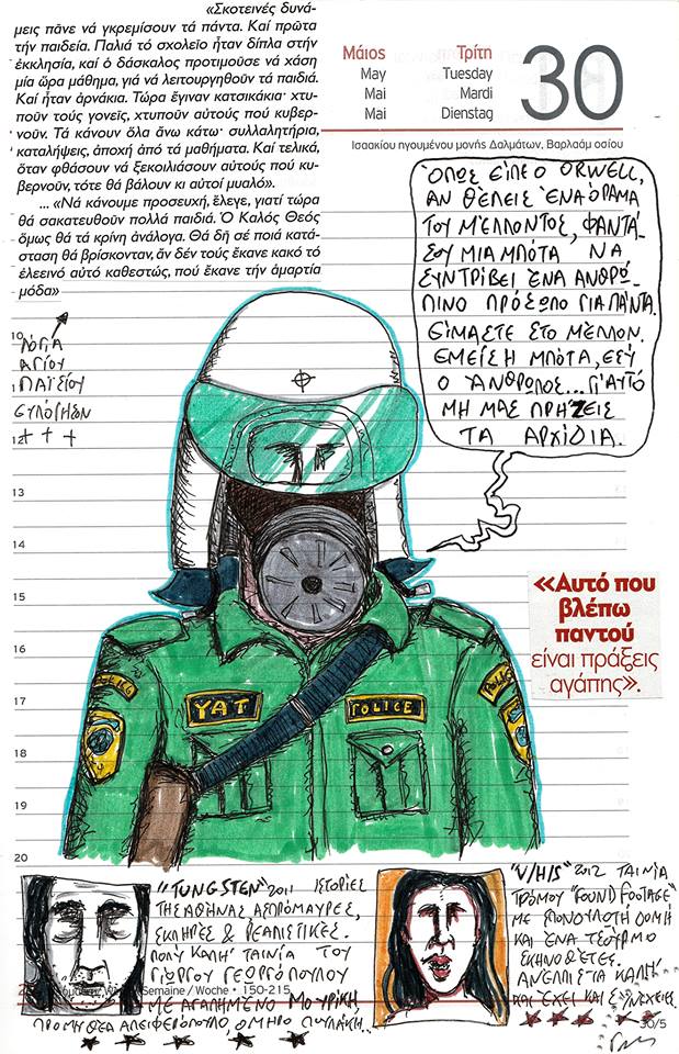 «Αν θέλεις ένα όραμα του μέλλοντος, φαντάσου μια μπότα να συντρίβει ένα ανθρώπινο πρόσωπο για πάντα» George Orwell. Λίγο κήρυγμα, ιστορίες δικαιοσύνης για αγρίους και το βράδυ κοντοσούβλι υπό τους ήχους των νυχτερινών του Chopin. Δύο ταινίες: “Tungsten” 2011 & “V/H/S” 2012.