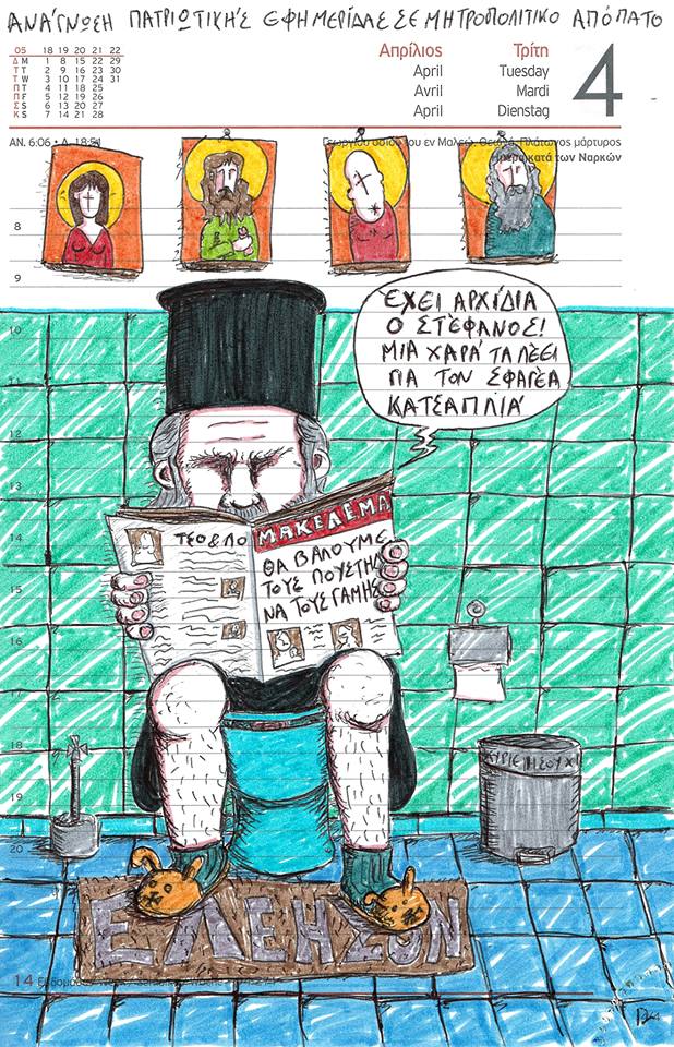 Η ανάγνωση ακηδεμόνευτης και πατριωτικής εφημερίδας στο μητροπολιτικό αφοδευτήριο, ενέπνεε τον Παναγιώτατο να γράφει στο προσωπικό του ιστολόγιο.