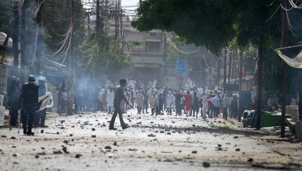 Οι διαδηλωτές ζητούν τη σύλληψη των δύο κυβερνώντων για προσβολή του Προφήτη του Ισλάμ, Χαζράτ Μοχάμαντ και η αστυνομία καταφεύγει στη βία για να τους καταστείλει.
