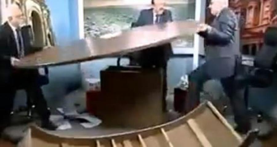 Δύο δημοσιογράφοι, οι οποίοι είχαν προσκληθεί σε εκπομπή της ιορδανικής τηλεόρασης με αντικείμενο συζήτησης την κρίση στη Συρία, ξεπέρασαν κατά πολύ τα όρια. Η λογομαχία εξελίχθηκε σε άγριο καβγά, κατά τον οποίο το στούντιο γκερμίστηκε
