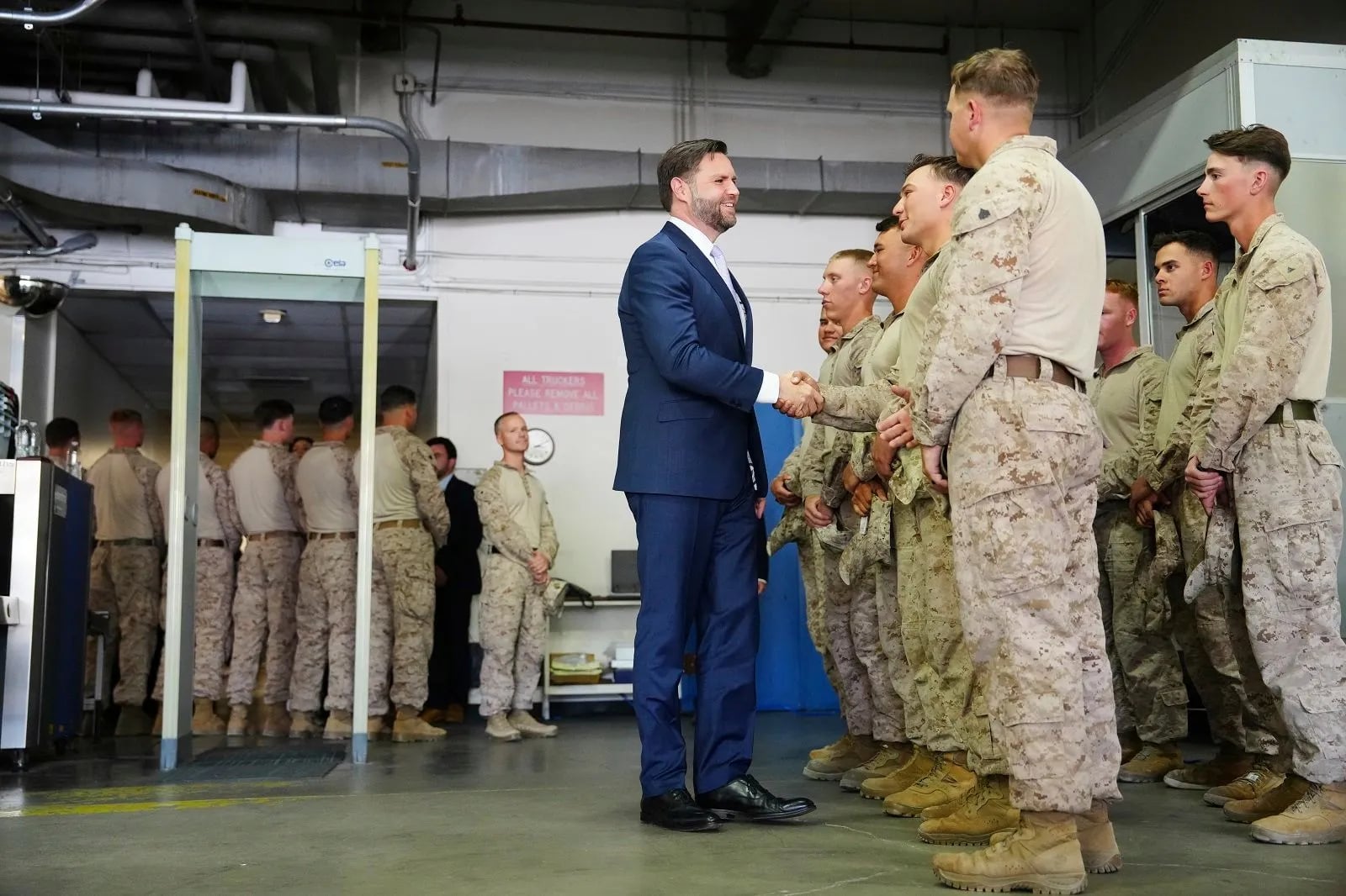 Ο Βανς συναντήθηκε με περισσότερους από 4.700 στρατιώτες —συμπεριλαμβανομένων 700 πεζοναυτών και 4.000 μελών της Εθνικής Φρουράς— που στάλθηκαν από τον πρόεδρο Τραμπ στις αρχές Ιουνίου, εν μέσω μαζικών διαδηλώσεων κατά των απελάσεων. Η απόφαση του Ανωτάτου Δικαστηρίου, που διατηρεί τον έλεγχο της Εθνικής Φρουράς στα χέρια του Τραμπ, παρείχε νομική κάλυψη στην ανάπτυξη δυνάμεων, παρά τις έντονες αντιδράσεις της πολιτειακής ηγεσίας.
