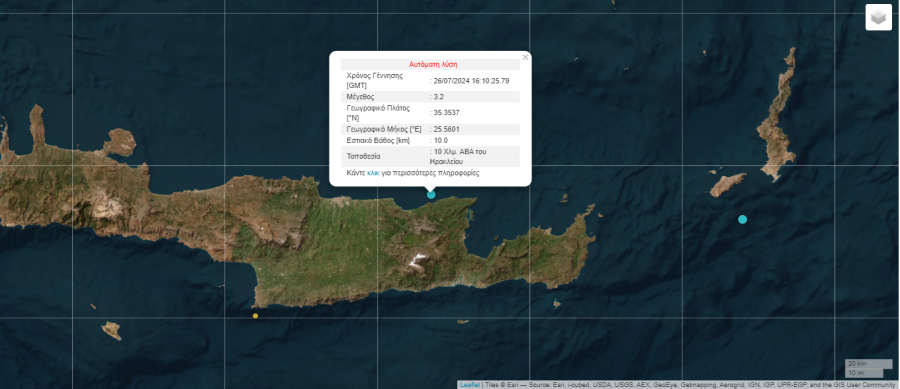 Ισχυρή σεισμική δόνηση σημειώθηκε το απόγευμα στην Κρήτη, ανοιχτά του Ηρακλείου.