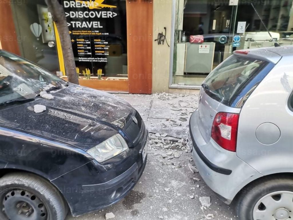 Η ισχυρή σεισμική δόνηση μεγέθους 6 βαθμών της κλίμακας Ρίχτερ που έπληξε τη Λάρισα νωρίς το μεσημέρι της Τετάρτης, προκάλεσε πτώση σοβάδων σε διάφορα σημεία στο κέντρο της Λάρισας.