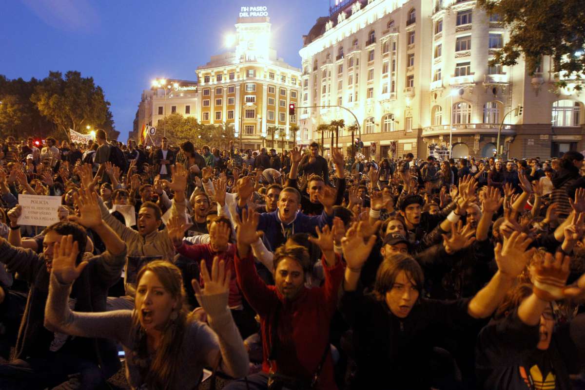 Πολλές χιλιάδες διαδηλωτές του κινήματος των «Αγανακτισμένων» συγκεντρώθηκαν εκ νέου χθες το βράδυ κοντά στο κοινοβούλιο της Μαδρίτης, με αίτημα την «παραίτηση της κυβέρνησης», έχοντας απέναντί τους ισχυρές αστυνομικές δυνάμεις, την επομένη της βίαιης διαδήλωσης που έγινε στην ισπανική πρωτεύουσα κατά την οποία τραυματίστηκαν περισσότεροι από 60 άνθρωποι.