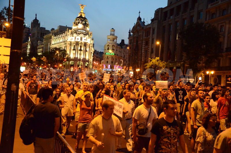 Ανταποκριτές ξένων ειδησεογραφικών πρακτορείων αναφέρουν πως κοντά στα μεσάνυχτα, στη συγκέντρωση στη Μαδρίτη ξέσπασαν επεισόδια με τους αστυνομικούς να χρησιμοποιούν γκλομπ και μερικές μολότοφ να πέφτουν στην πλευρά των αστυνομικών.