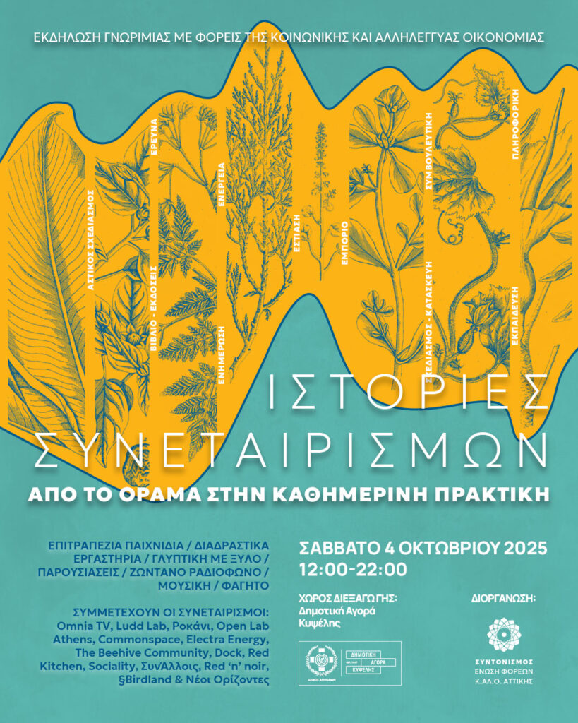 Μια μέρα γεμάτη ιστορίες συνεργατισμού που αποδεικνύουν ότι υπάρχει κι άλλος τρόπος να οργανώνουμε την εργασία, την κατανάλωση και τη ζωή μας: πιο δίκαιος, πιο συλλογικός και –ας το παραδεχτούμε– πολύ πιο ωραίος.