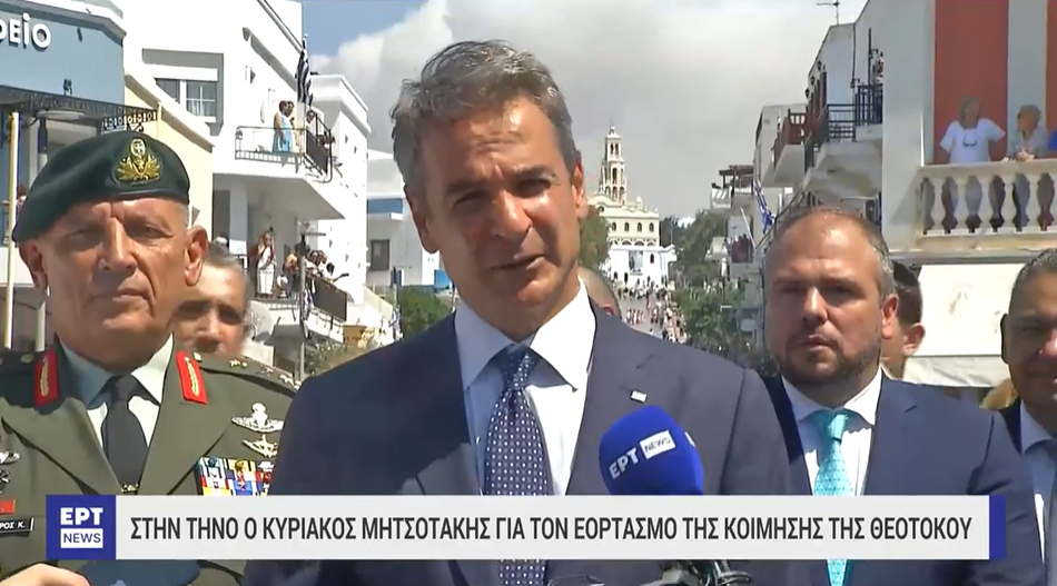 «Έχουμε κάθε λόγο να είμαστε αισιόδοξοι για το μέλλον. Η χώρα έχει ξεπεράσει τη δεκαετή κρίση και έχει κάθε δικαίωμα να ατενίζει το μέλλον με ελπίδα και αισιοδοξία» δήλωσε ο Πρωθυπουργός Κυριάκος Μητσοτάκης από την Τήνο, όπου βρίσκεται για τον εορτασμό της Κοιμήσεως της Θεοτόκου και τις εκδηλώσεις για την επέτειο του τορπιλισμού τού καταδρομικού «Έλλη».