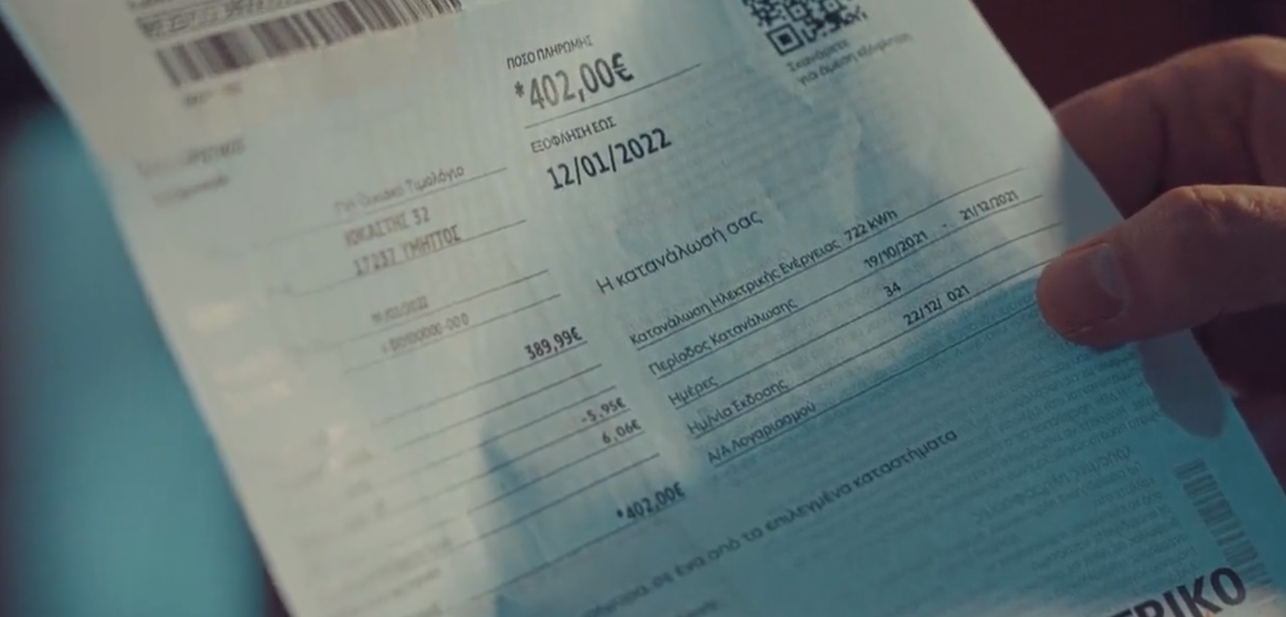 Στο πρώτο βίντεο πρωταγωνιστεί ένας απεγνωσμένος πολίτης, ο οποίος μόλις έχει λάβει τον λογαριασμό του ηλεκτρικού ρεύματος ενώ ακούει τον Κυριάκο Μητσοτάκη να υπόσχεται μηδενικές αυξήσεις στο ρεύμα.