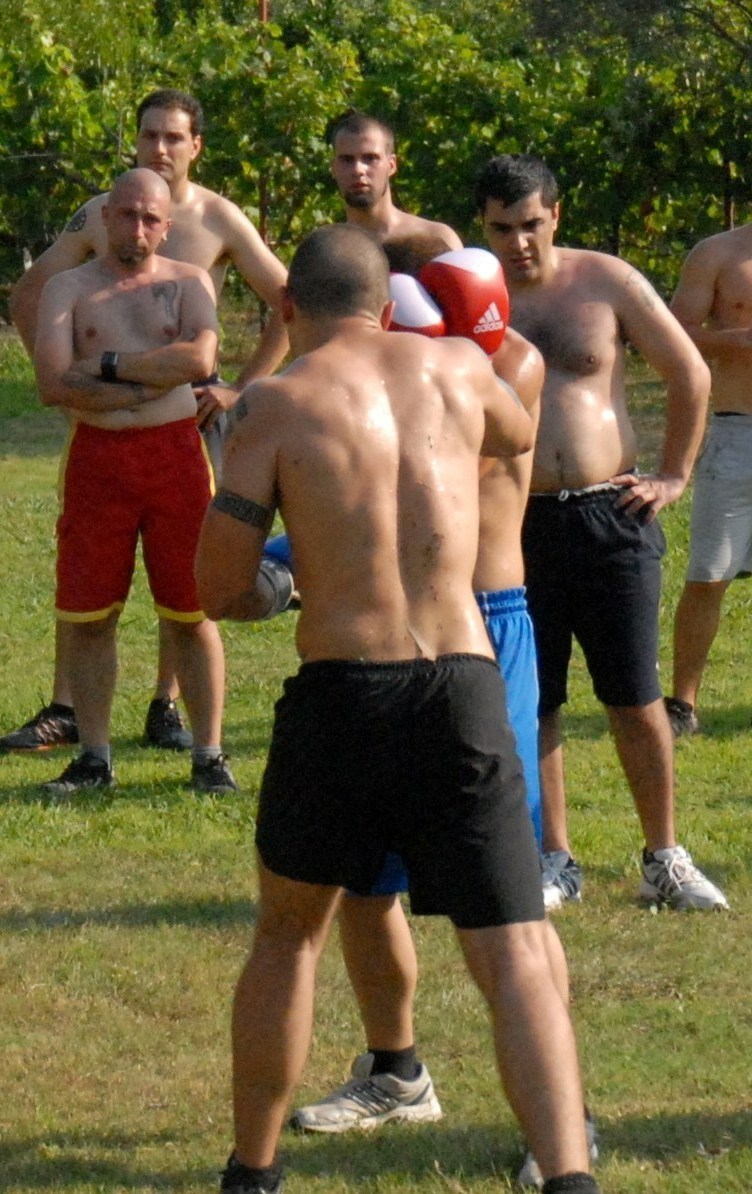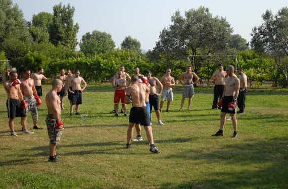 Στις επόμενες τρεις φωτογραφίες εικονίζεται ο Μπαντέμης (με την κόκκινη βερμούδα) σε “εθνικιστική κατασκήνωση” της Χρυσής Αυγής με εκπαιδευτή τον Κασιδιάρη. Διακρίνεται επίσης ο Ματθαιόπουλος: