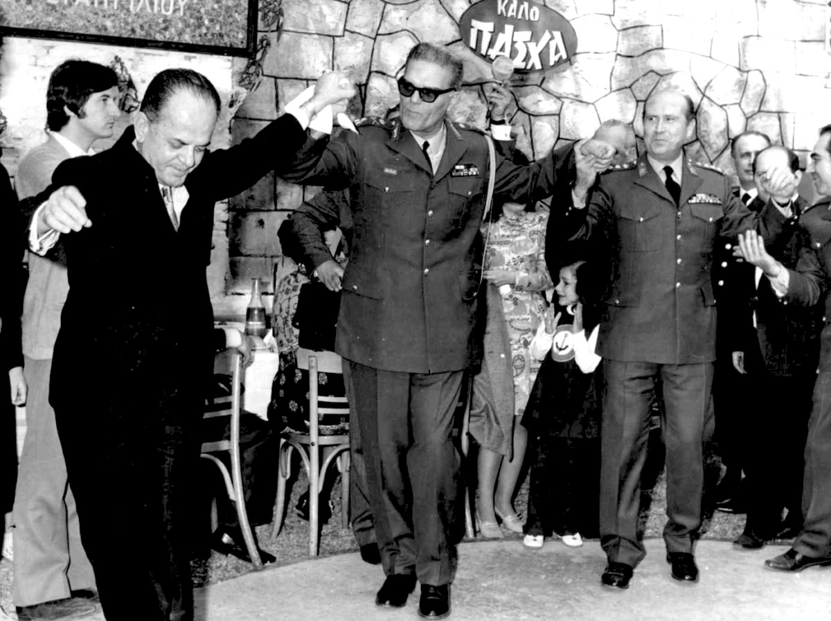 - Τις «πολλές τέχνες (που) άνθησαν», όπως την «τέχνη» να στέλνεις στην εξορία τον Ρίτσο και τον Θεοδωράκη, να στέλνεις στην σιωπή τον Σεφέρη, να στέλνεις τον λογοκριτή και τον χαφιέ από «Το μεγάλο μας τσίρκο» μέχρι την «Απανεμιά», την ώρα που οργανώνεις «εθνοσωτήριες» γελοιότητες στο Παναθηναικό Στάδιο…