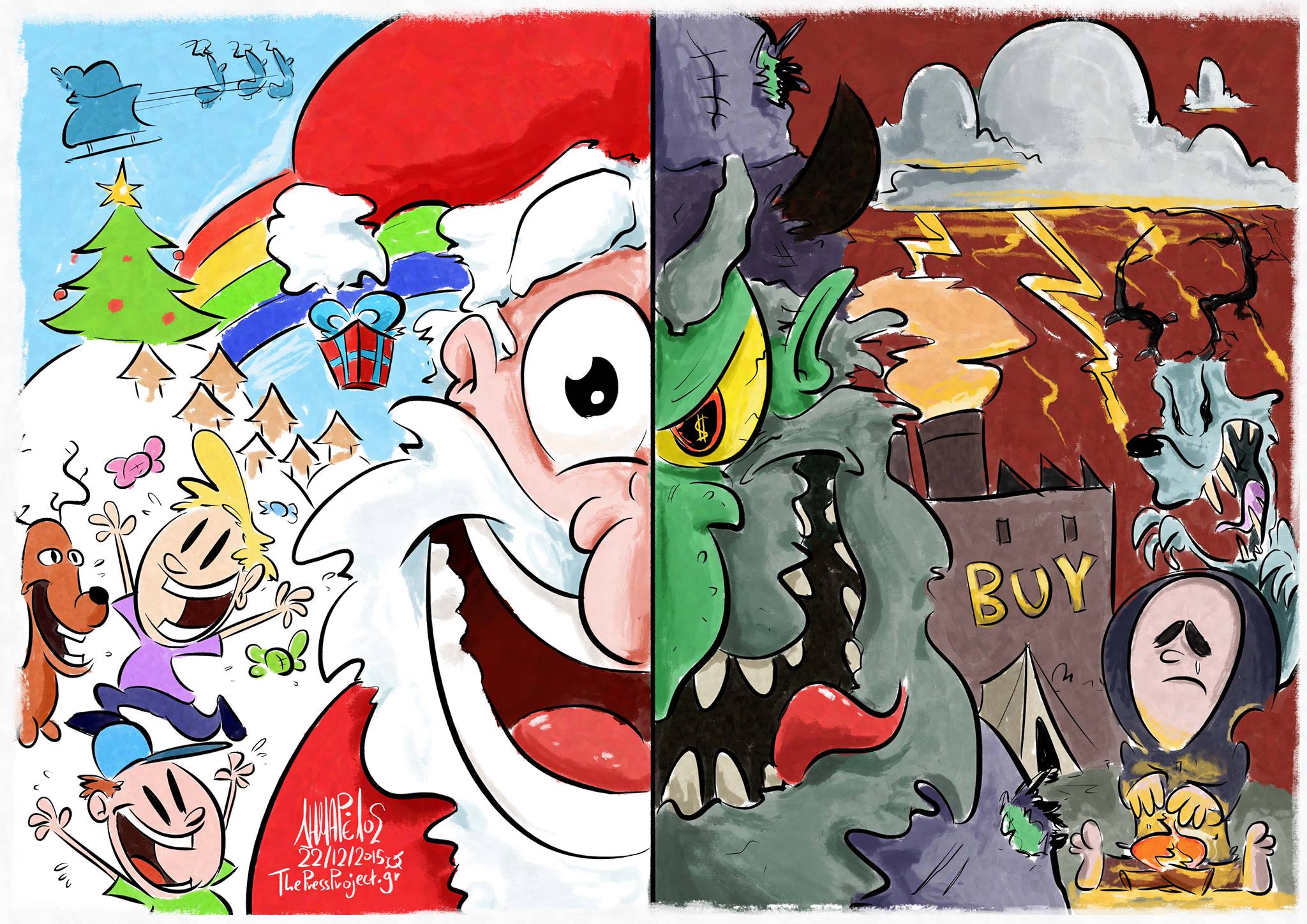 Αν το σκεφτεί κανείς, οι χριστουγεννιάτικες ιστορίες έχουν ως κύριο χαρακτηριστικό τη συμπόνια. Όχι μόνο το κοριτσάκι με τα σπίρτα – όλες αυτές οι σπαραξικάρδιες ιστορίες έχουν ένα κοινό χαρακτηριστικό, που είναι να σηκώνει κανείς το κεφάλι και να κοιτάζει πάνω από τον τοίχο της μακαριότητάς του, στη δυστυχία των άλλων. Αυτό το μήνυμα, που έκανε τα Χριστούγεννα κάπως καταθλιπτικά, έχει παραπέσει. Έχει επικρατήσει αυτό που κατ’ εξοχήν κάνει ο σύγχρονος άνθρωπος: ψώνια. Μάλιστα η σύνδεση των Χριστουγέννων με την κατανάλωση υπήρξε τόσο αποτελεσματική, ώστε αποτέλεσε ένα αντίστροφο πρόβλημα για τους διαφημιστές, που από τις πρώτες δεκαετίες του 20ου αιώνα προσπαθούσαν να εξηγήσουν στους καταναλωτές ότι όλοι οι μήνες είναι κατάλληλοι για ψώνια, ξεκινώντας από γιορτές σαν την 4η Ιουλίου ή την «ημέρα του παιδιού».