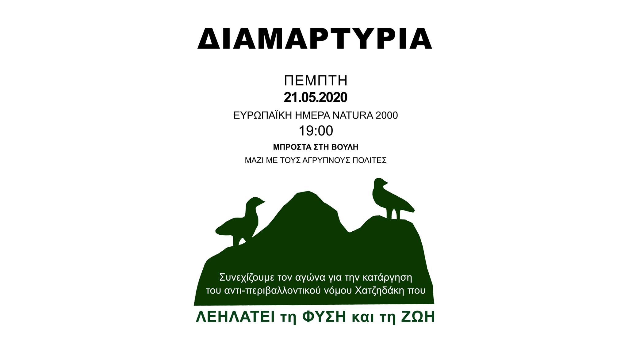 «Με αφορμή την πανευρωπαϊκή ημέρα περιοχών Natura 2000 που γιορτάζεται την Πέμπτη 21 Μαϊου, σας προσκαλούμε στην ελληνική ‘’κανονικότητα’’ όπου οι προστατευόμενες αυτές περιοχές ετοιμάζονται να καταστραφούν με πρόσχημα την πράσινη ανάπτυξη.