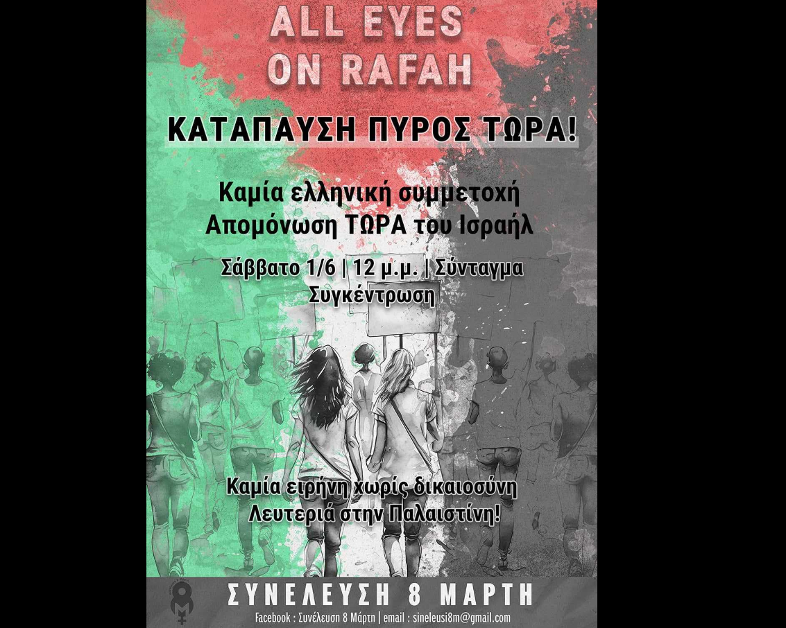 «Οι λέξεις αδυνατούν να περιγράψουν την οδύνη, την οργή και τη φρίκη που αισθανόμαστε για το έγκλημα που τελέστηκε εχθές, 27.5.2024, από την Ισραηλινή Πολεμική Αεροπορία: τον βομβαρδισμό καταυλισμού εκτοπισμένων αμάχων Παλαιστινίων στη Ράφα, ο οποίος βρισκόταν υπό την εποπτεία του Οργανισμού Ηνωμένων Εθνών. Ο βομβαρδισμός αυτός στοίχισε τη ζωή σε δεκάδες άμαχες/ους, εκ των οποίων πάρα πολλά ανήλικα παιδιά.