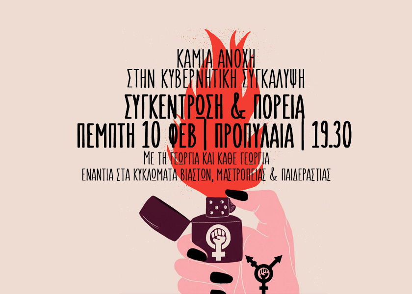 Η SABBAT, που προωθεί τον ταξικό, διαθεματικό, συμπεριληπτικό φεμινισμό, καλεί πλήθος κόσμου στις 19.30 την Πέμπτη 10 Φεβρουαρίου στα Προπύλαια (Αθήνα), να συγκεντρωθεί και να πραγματοποιήσει πορεία, ως ένδειξη διαμαρτυρίας στις συγκαλύψεις υποθέσεων βιασμού, από την κυβέρνηση, όπως αναφέρει η καμπάνια της οργάνωσης.