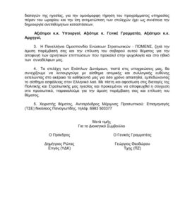 «Την ίδια στιγμή δηλαδή που οι συνάδελφοι μας εκτελούν υπηρεσίες επιφυλακής εντός Στρατοπέδων πολύ πέραν του ωραρίου καθώς και Σαββατοκύριακα και αργίες και σύμφωνα με τις διαταγές έχουν το δικαίωμα να σιτίζονται από τους εφοδιασμούς των Μονάδων, η υπηρεσία δεν φρόντισε να καλύψει το στοιχειώδες αυτό δικαίωμα τους, με αποτέλεσμα το σύνολο των συναδέλφων που είναι σε επιφυλακή, κλήθηκε σε Μονάδες του Στρατού Ξηράς στις περιοχές Ηπείρου, Θεσσαλονίκης, Έβρου και αλλού να μεταβεί σήμερα Σάββατο 15 Αυγούστου στις οικίες τους για λήψη φαγητού» καταγγέλλει στην ανακοίνωση της η ΠΟΜΕΝΣ.