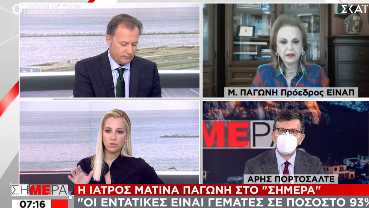 Σε κάθε περίπτωση παραδέχτηκε πως είναι πολύ νωρίς για να εκτιμήσουμε το εάν θα ξαναπάμε σε lockdown και επεσήμανε πως ο αριθμός νοσηλευομένων ειδικά στις ΜΕΘ θα μειωθεί σταδιακά. Όπως τόνισε η κα Παγώνη εχθές το βράδυ γύρω στις 2 είχαμε 93% κάλυψη των ΜΕΘ ενώ πρόσθεσε πως κατά την κρίση της περάσαμε το πικ της πανδημίας.