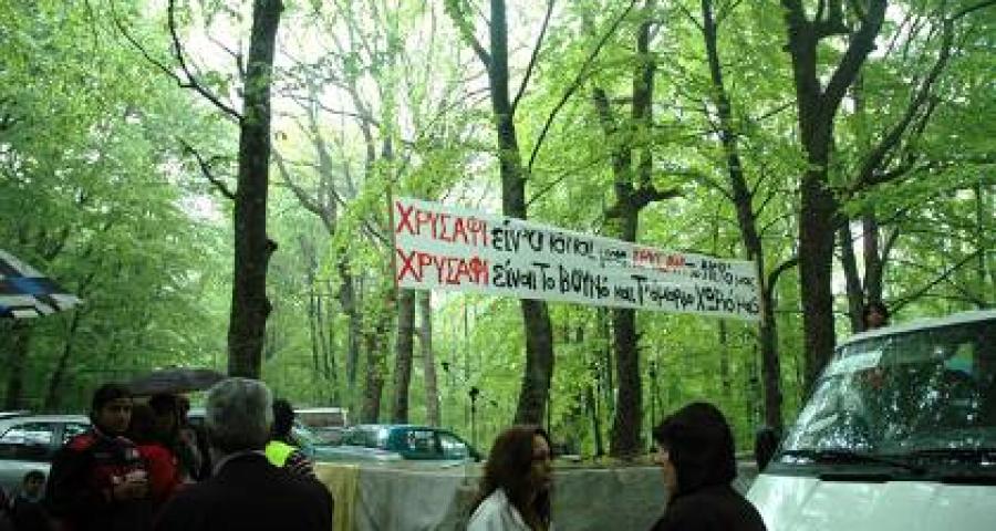 Γυναίκα κατηγορείται ότι αναρτούσε στο Ιντερνετ κείμενα κατά της εξόρυξης χρυσού, όπως επιστημονικές μελέτες καθηγητών του ΑΠΘ, ή αφίσες από τις εκδηλώσεις κατά της εξόρυξης που διοργάνωναν τα συντονιστικά των κατοίκων, ή αφίσες από εκδηλώσεις κατά της εξόρυξης, που διοργάνωναν ομάδες του αντιεξουσιαστικού χώρου.