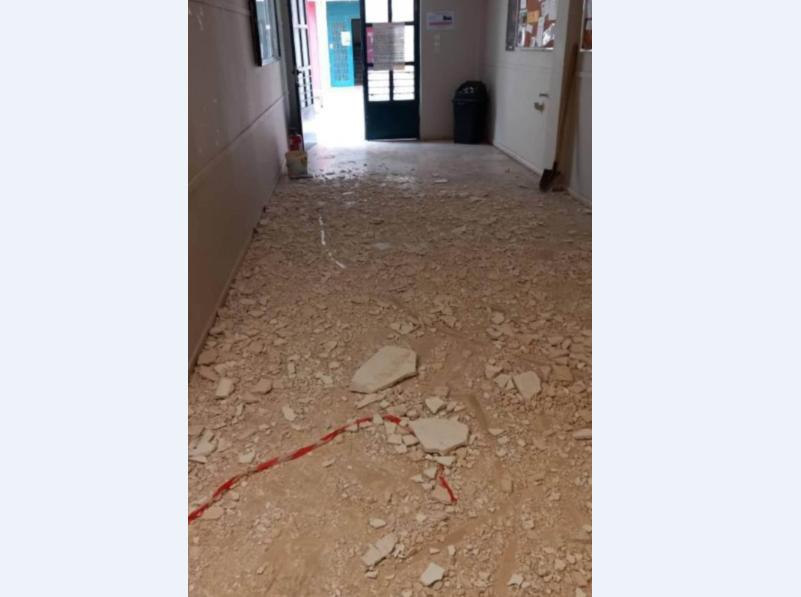 Κατέρρευσε το ταβάνι του κεντρικού διαδρόμου της σχολής και «από τύχη» δεν έπεσε στο κεφάλι φοιτητών.