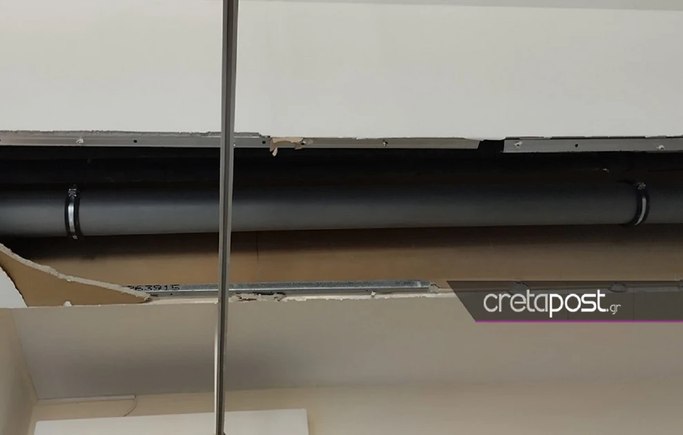 Η αποκόλληση της οροφής άφησε εκτεθειμένες σωληνώσεις, δημιουργώντας σοβαρό κίνδυνο για τους ασθενείς και το προσωπικό.