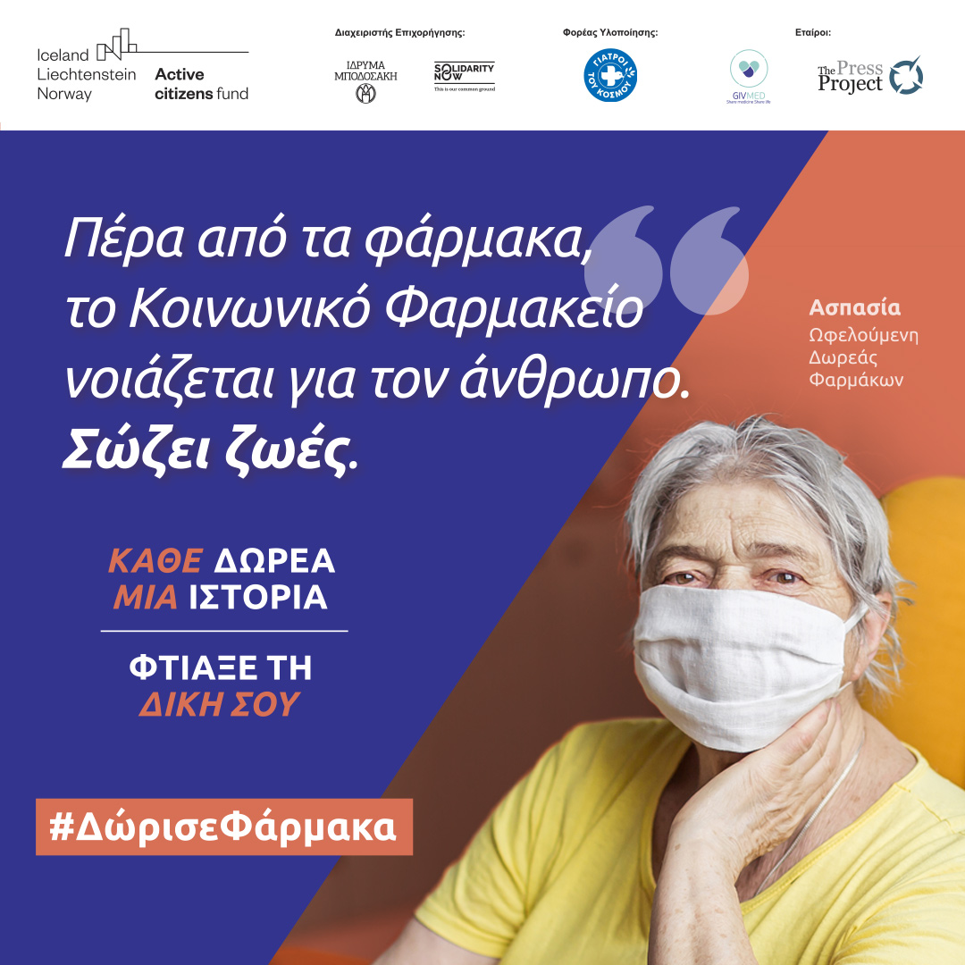 “Πέρα από τα φάρμακα, το Κοινωνικό Φαρμακείο νοιάζεται για τον άνθρωπο. Σώζει ζωές.”, μας είπε η Ασπασία που έλαβε και εκείνη φάρμακα μέσω δωρεάς. Δες εδώ ολόκληρη την ιστορία της Ασπασίας.