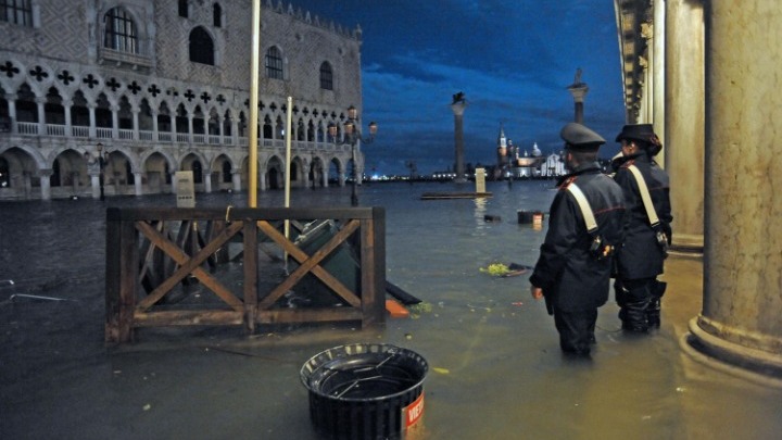 Αξιωματούχοι της πόλης ανακοίνωσαν ότι χθες στις 10.50 μμ η πλημμυρίδα έφθασε τα 187 εκατοστά, λίγο λιγότερα από το ρεκόρ των 194 εκατοστών που είχε καταγραφεί το 1966.