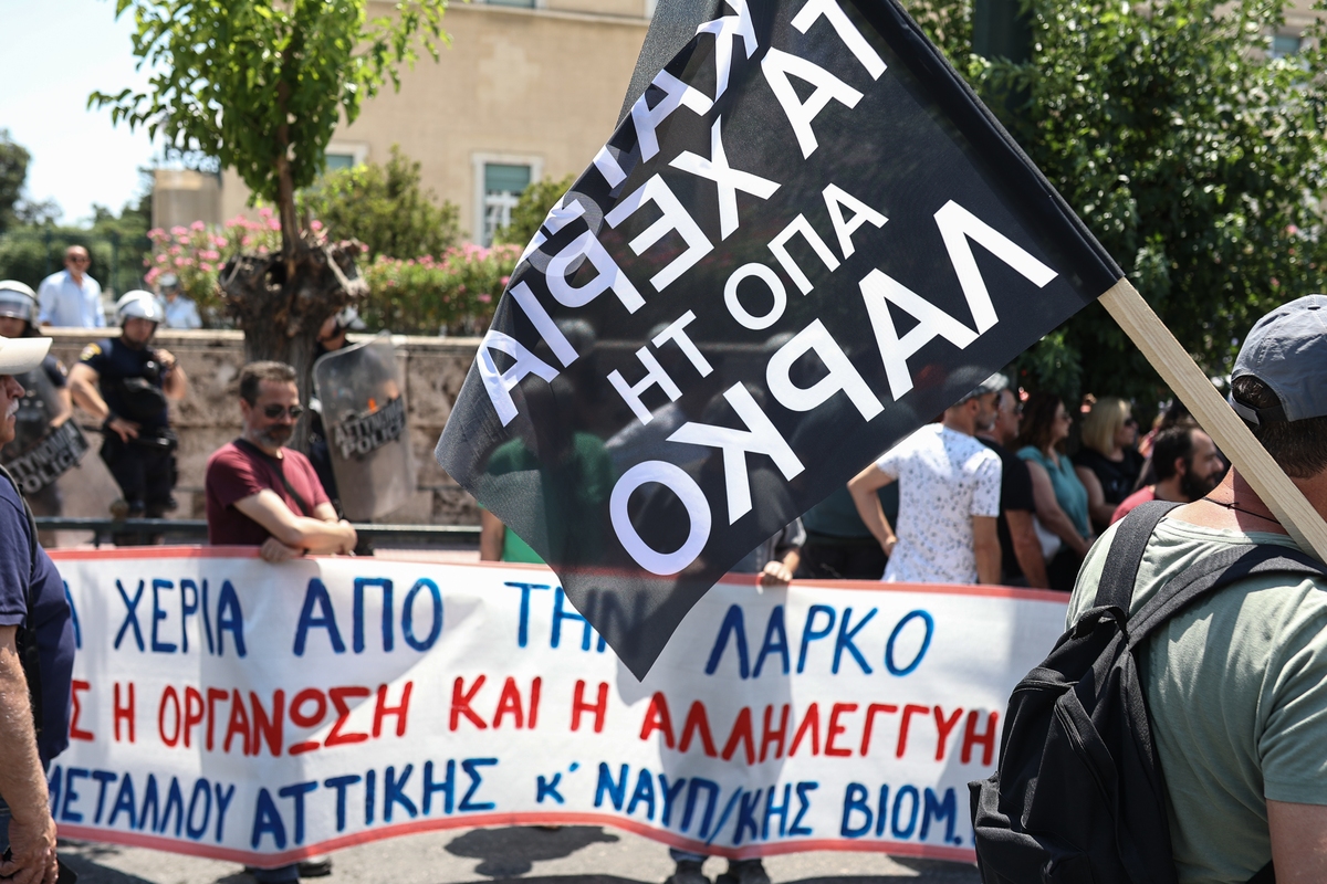 Στη συγκέντρωση παρευρέθηκε ο ΓΓ της ΚΕ του ΚΚΕ, Δημήτρης Κουτσούμπας, και οι βουλευτές του κόμματος Θανάσης Παφίλης και Χρήστος Κατσώτης, ενώ νωρίτερα ο ΓΓ του ΚΚΕ μιλώντας στην Ολομέλεια της Βουλής τόνισε ότι «δεν πρέπει να περάσει το έγκλημα στη ΛΑΡΚΟ» και απευθυνόμενος στην κυβέρνηση είπε «πάρτε πίσω την τροπολογία-έκτρωμα που προβλέπει ομαδικές απολύσεις, είναι καραμπινάτη πολιτική αλητεία αυτό που κάνετε, θα πρέπει να ντρέπεστε».