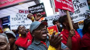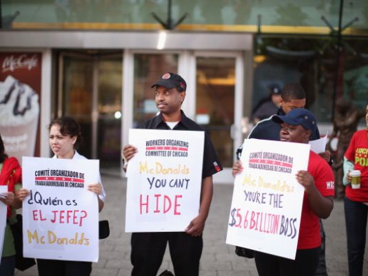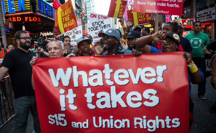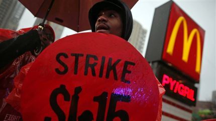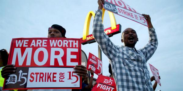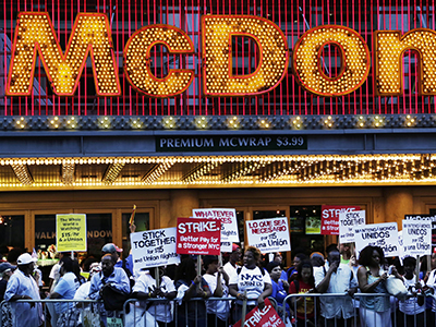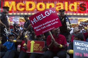 Ο τρέχον κατώτατος μισθό στις Ηνωμένες Πολιτείες ποικίλλει από πολιτεία σε πολιτεία και κυμαίνεται από περίπου 7.50 δολάρια την ώρα έως περίπου 11 δολάρια την ώρα. Οι εργαζόμενοι στα fast food βρίσκονται σε κινητοποιήσεις από το Νοέμβριο του 2012.