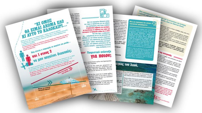 «Σήµερα υπάρχουν τεράστιες δυνατότητες ώστε οι εργαζόµενοι καθολικά να απολαµβάνουν φθηνές και ποιοτικές διακοπές. Αυτό το ζωτικό δικαίωµα, που αφορά την ίδια την αναπλήρωση της εργατικής δύναµης υπερασπίζεται το ΚΚΕ» υπογραμμίζει το Φυλλάδιο του κόμματος.