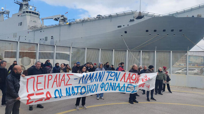 Όπως μεταδίδει το 902.gr, «η πορεία πέρασε αιφνιδιαστικά στον εσωτερικό περίβολο του λιμανιού και βρέθηκε μια ανάσα από τα πολεμικά πλοία, όπου ήταν έκδηλη η ανησυχία των πληρωμάτων. Με απανωτά συνθήματα, έστειλαν μήνυμα ότι οι ΝΑΤΟϊκοί είναι ανεπιθύμητοι στο λιμάνι του Πειραιά και κατήγγειλαν την βαθιά εμπλοκή της χώρας στα Αμερικανονατοϊκά σχέδια».