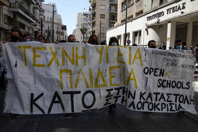 «Όλο αυτό τον καιρό, η κυβέρνηση επέδειξε αξιοσημείωτη αδιαφορία για τους εργαζόμενους στον Πολιτισμό και τα ελάχιστα και αποσπασματικά επιδόματα δόθηκαν μετά από αγώνες, μέσα από μία πρωτοφανή συσπείρωση του κλάδου. Την ίδια αδιαφορία επέδειξε και για τις καλλιτεχνικές σπουδές, κρατώντας τις δραματικές σχολές, τις σχολές χορού και τα ωδεία κλειστά, ενώ οι πρόβες, που έχουν παρεμφερή λειτουργία, γίνονται κανονικά. Απέτυχε να φτιάξει ένα ενιαίο πλαίσιο για όλες τις σχολές σε σχέση με την τηλεκπαίδευση, οδηγώντας τες σε αδιέξοδο και φέρνοντας τους σπουδαστές αντιμέτωπους με τον κίνδυνο να χαθεί η χρονιά τους ή ακόμα και να μην καταφέρουν να αποφοιτήσουν» σημειώνει η Πανελλήνια Ομοσπονδία Θεάματος Ακροάματος (Π.Ο.Θ.Α).