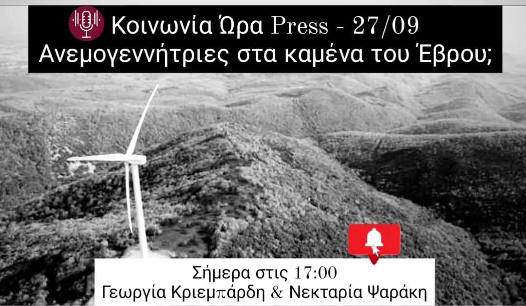 Στο δεύτερο ημίωρο της εκπομπής θα μιλήσουμε με τον υπεύθυνο δράσεων διατήρησης της Ελληνικής Ορνιθολογικής Εταιρείας, Απόστολο Καλτσή. Με ανακοίνωσή της η Ελληνική Ορνιθολογική Εταιρεία αποκάλυψε ότι η Αποκεντρωμένη Διοίκηση Μακεδονίας – Θράκης σε συνεργασία με το ΥΠΕΝ ενέκριναν την τοποθέτηση ανεμογεννητριών στα καμένα του Έβρου, την ίδια ώρα που η αρμόδια υπηρεσία του Υπουργείου (ΟΦΥΠΕΚΑ) είχε δώσει αρνητική εισήγηση. Μετά τις αντιδράσεις, το ΥΠΕΝ ανέστειλε αυτή την «οικονομική δραστηριότητα» για ένα χρόνο, με το ζήτημα να εξακολουθεί να γεννά ερωτήματα ως προς το ποια είναι τα κριτήρια τα οποία υπερίσχυσαν της εισήγησης του ΟΦΥΠΕΚΑ.