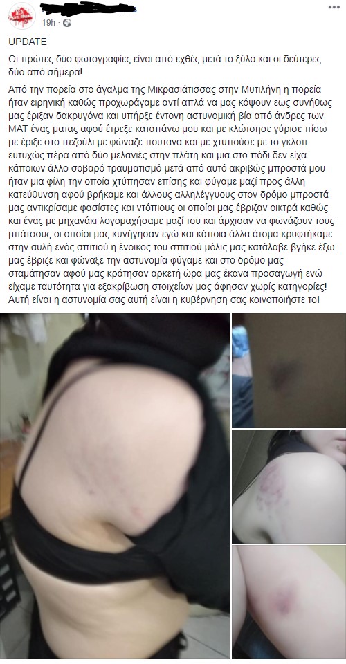 αναφέρει η προσαχθείσα, ενώ φωτογραφίες των τραυμάτων της κοπέλας δημοσιεύτηκαν στα κοινωνικά δίκτυα.