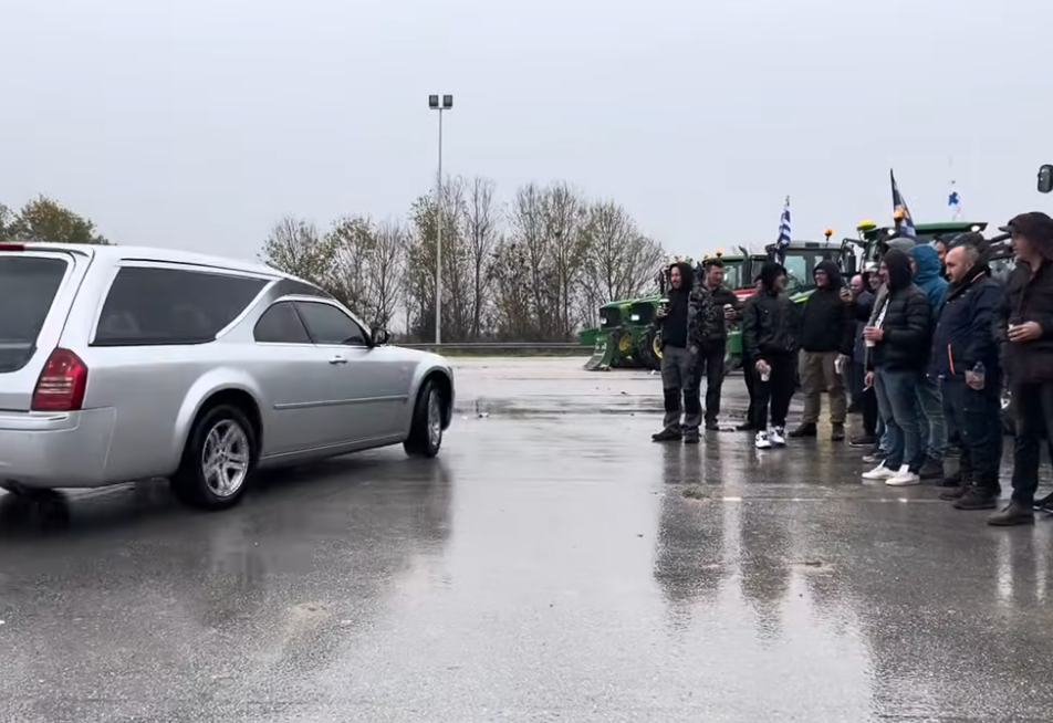 Σύμφωνα με το thesspost.gr, τα οχήματα των Οίκων Τελετών της Κεντρικής Μακεδονίας έχουν παραταχθεί πλάι στα τρακτέρ, στέλνοντας το συμβολικό μήνυμα ότι ο πρωτογενής τομέας πεθαίνει.
