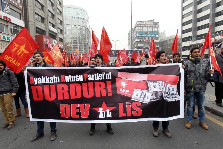 Εκατοντάδες διαδηλωτές συγκεντρώθηκαν σε μια πλατεία της συνοικίας Καντίκιοϊ της Κωνσταντινούπολης κρατώντας πανό που καλούσαν την κυβέρνηση του πρωθυπουργού Ρετζέπ Ταγίπ Ερντογάν να παραιτηθεί, μετέδωσε το τουρκικό πρακτορείο ειδήσεων Dogan News.