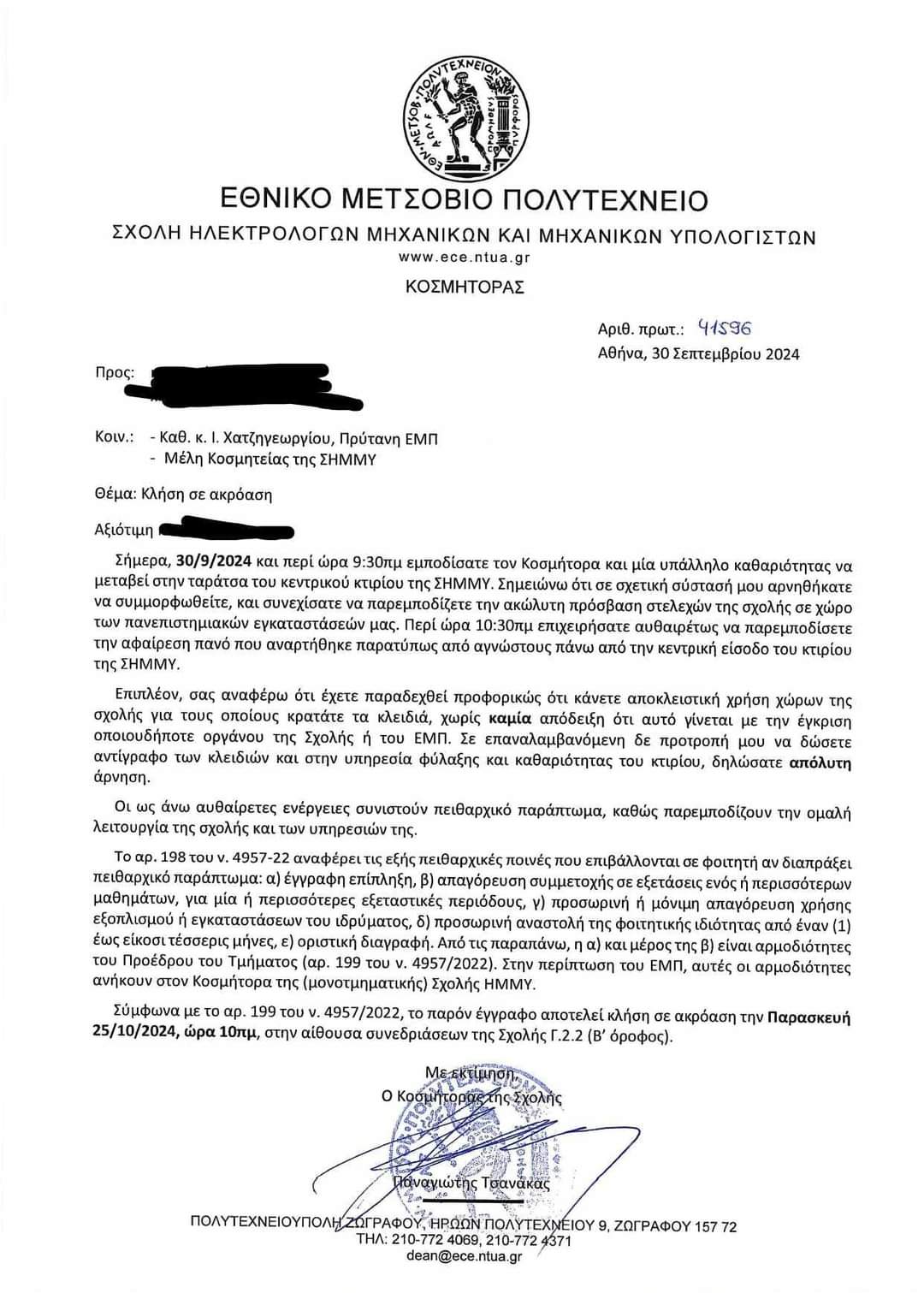 Φοιτήτρια ΗΜΜΥ: «Στοχευμένη επίθεση σε συνδικαλιστικά υλικά και στοχοποίηση συγκεκριμένων συνδικαλιστών»