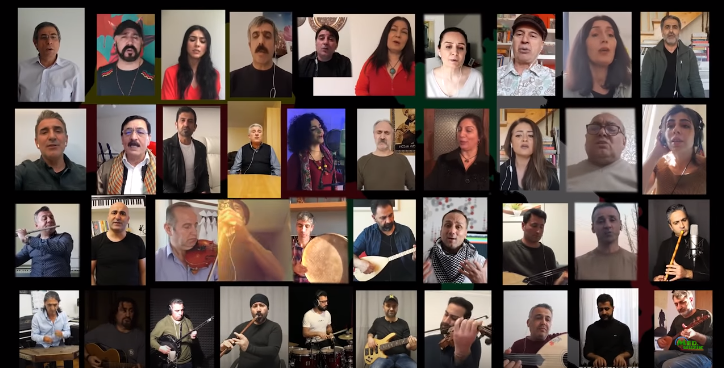 Σαράντα Κούρδοι μουσικοί εκφράζουν την αλληλεγγύη τους στους Ιταλούς τραγουδώντας το ιταλικό τραγούδι των παρτιζάνων Bella Ciao.