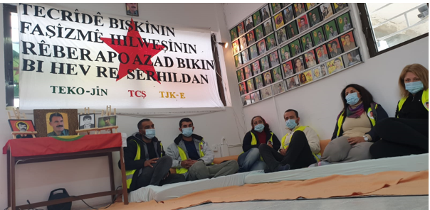 Η απεργία πείνας ξεκίνησε στις 4 Ιανουαρίου, ενώ από τις 13 Δεκεμβρίου, προκειμένου να διεκδικηθεί το δικαίωμα στην απεργία πείνας, κάθε Σάββατο στις 20:00 και κάθε Τρίτη στις 13:00, διοργανώνεται διαμαρτυρία εντός του καταυλισμού. Η απεργία πείνας κινείται από το Επαναστατικό Κίνημα Νεολαίας (TCŞ-Tevgera Ciwanên Şoreşger), το Γυναικείο Κουρδικό Κίνημα στην Ευρώπη (Tevgera Jinên Kurdistan a Ewropa) και το Πολιτιστικό Κέντρο του Κουρδιστάν (Navenda Çanda Kurdistan).